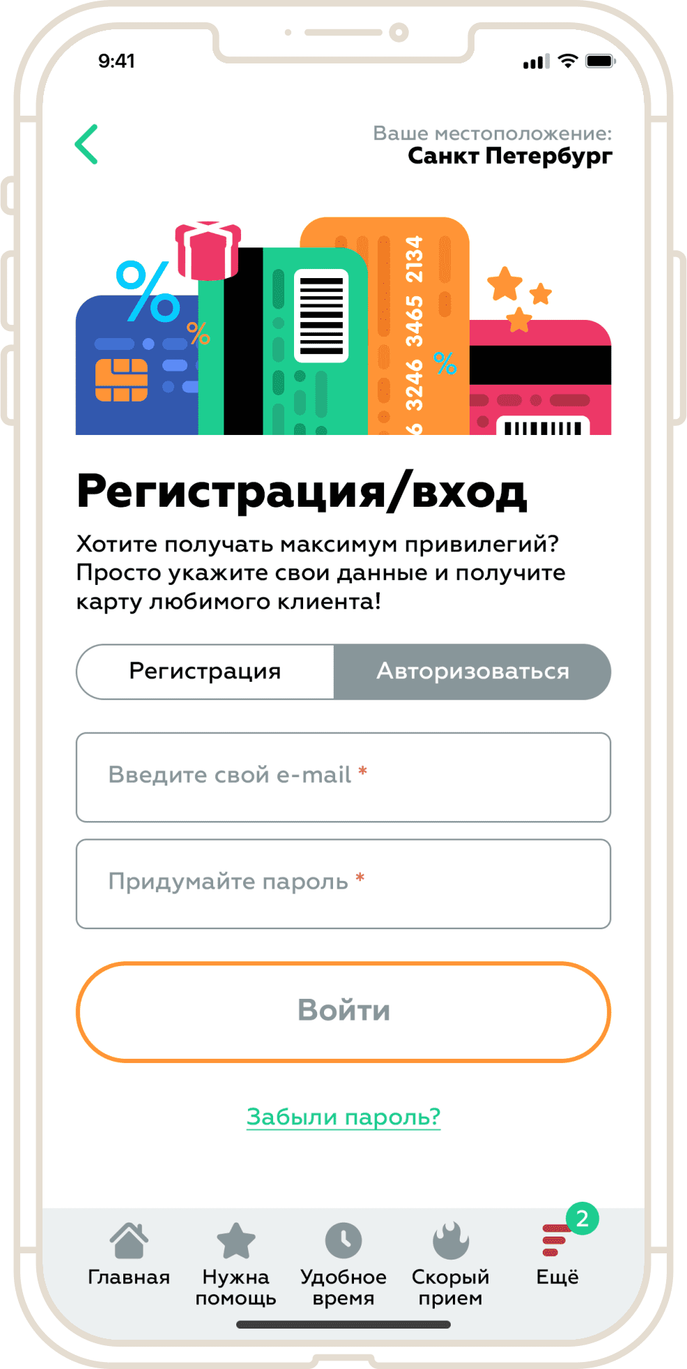Имея уникальный номер карты клиент может записаться на прием прямо в онлайне
